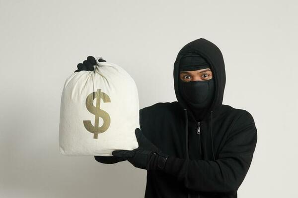 Bank Robber in a Mask with Stolen Money Stock Photo Image of gangster