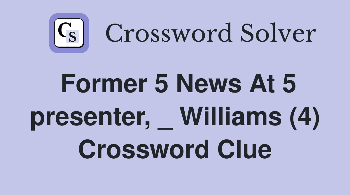 Former 5 News At 5 presenter Williams (4) Crossword Clue Answers