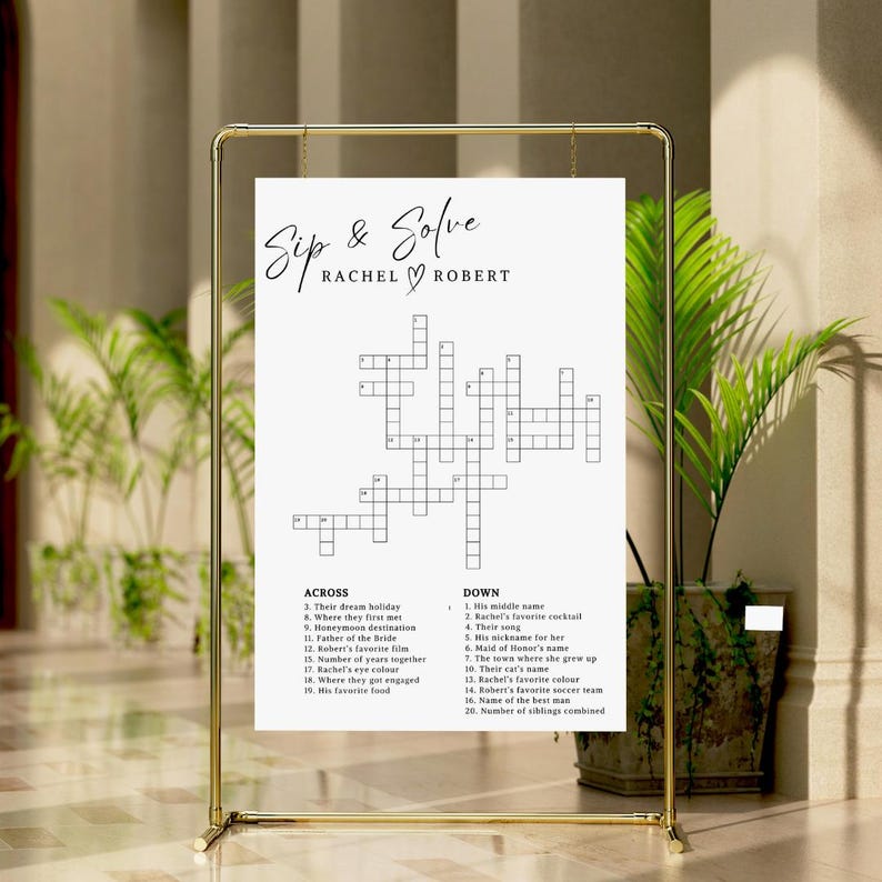 Custom Wedding Crossword Puzzle Template Minimalist Sip and Solve