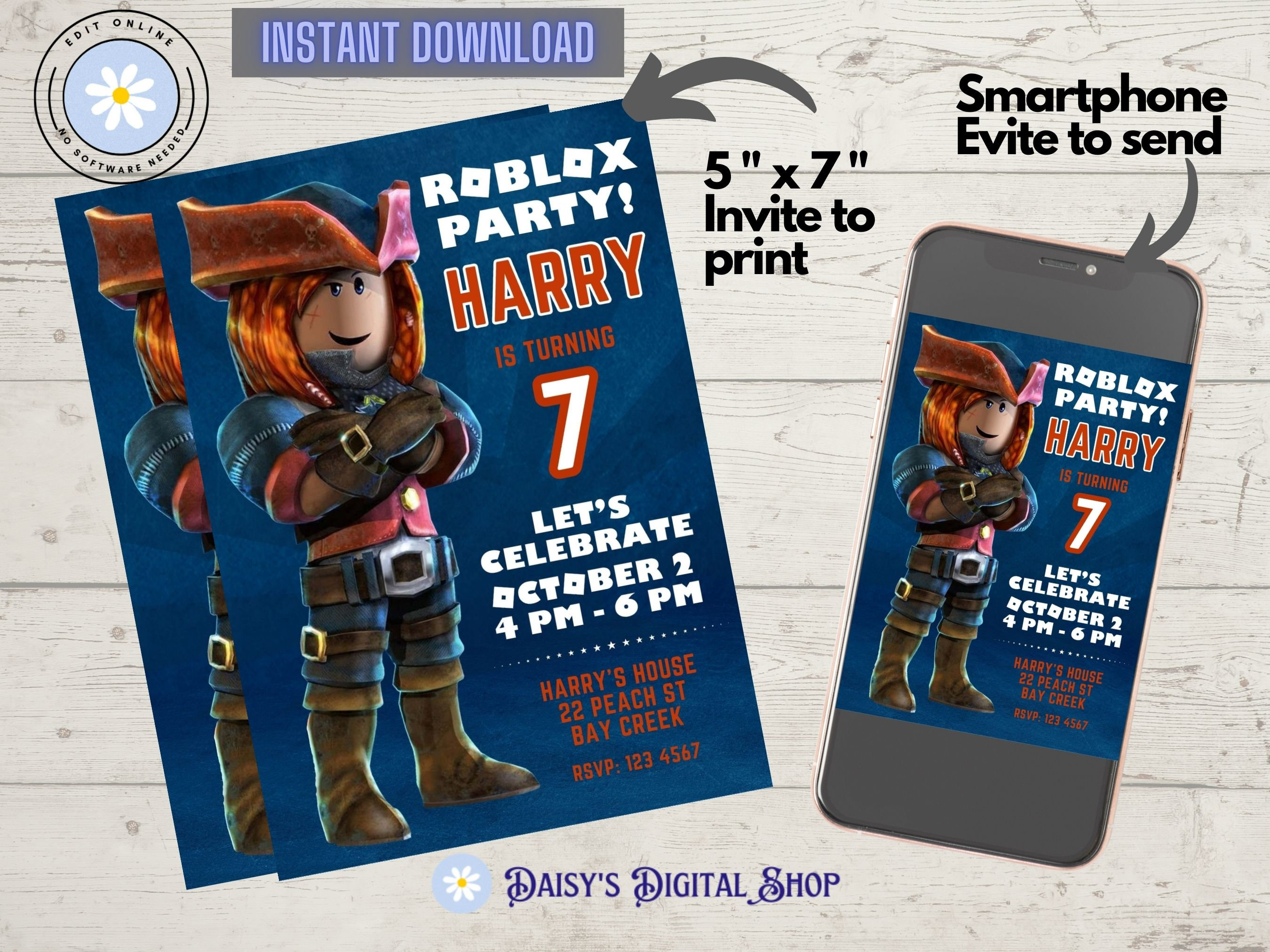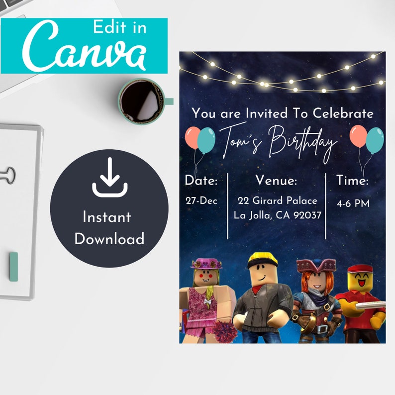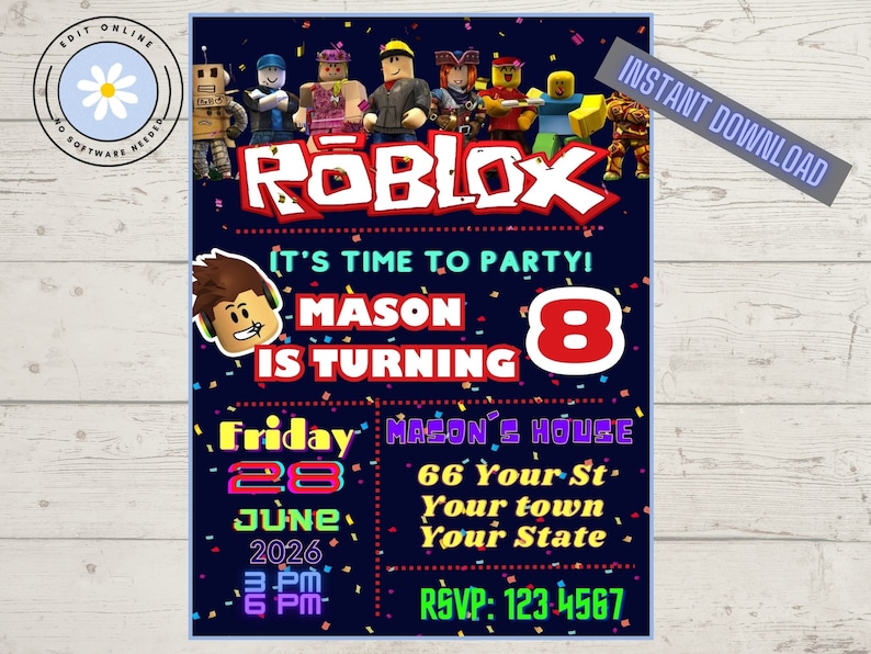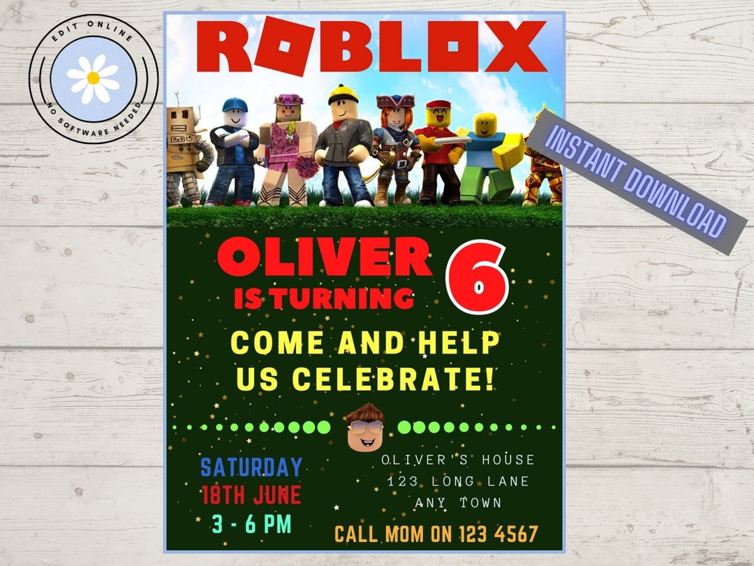 Roblox Birthday Invitation Template Editable Printable Instant D