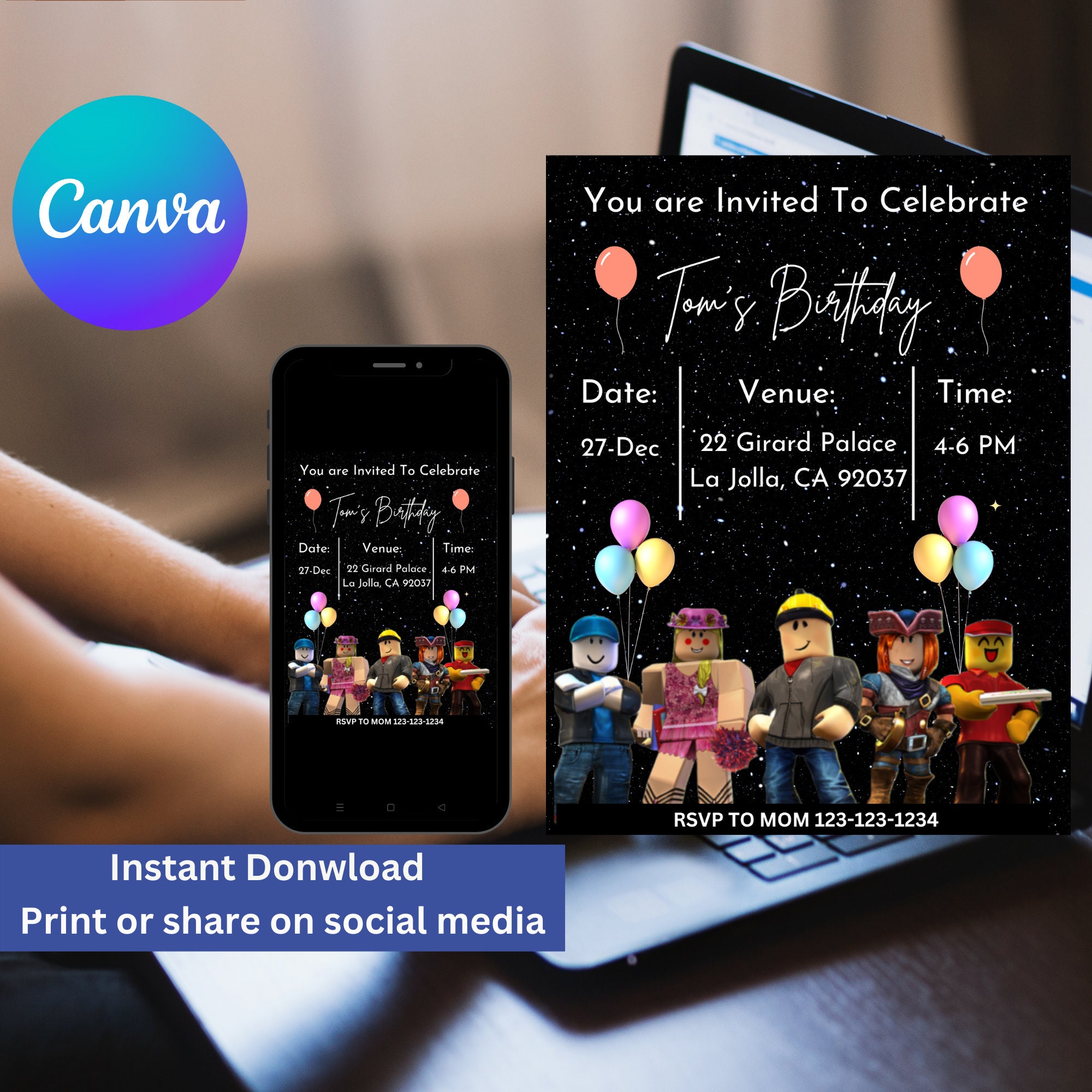 Roblox Party Invitations Customize Online Now