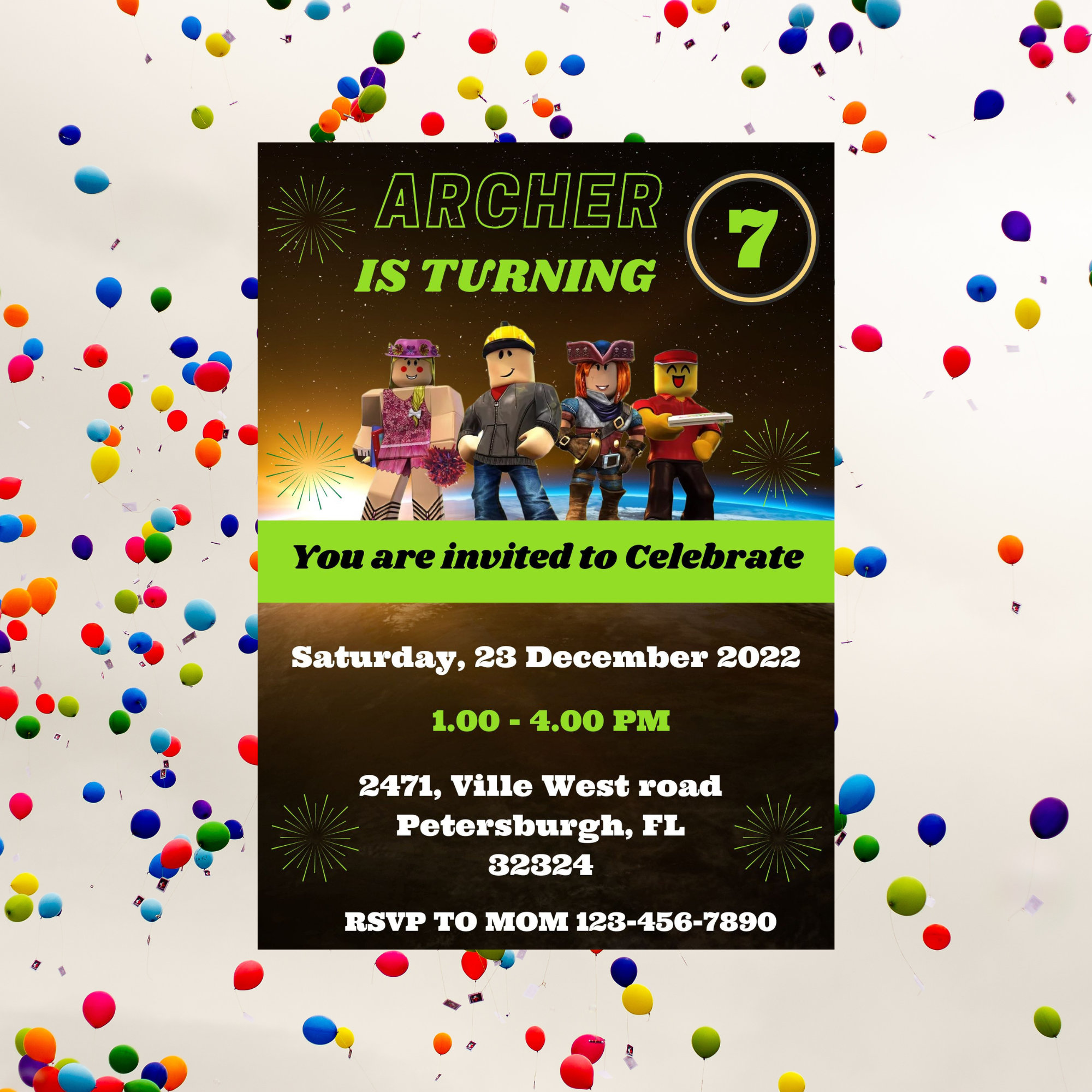 ROBLOX Inspired Customizable Birthday Party Invitation Corjl Template