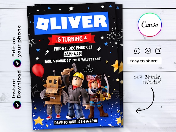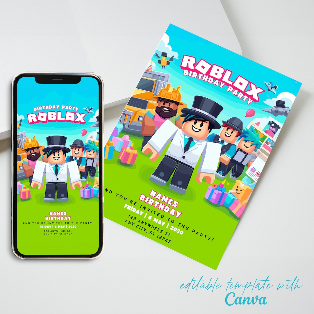 Editable Roblox Birthday Invitation Templates Canva Printable Etsy
