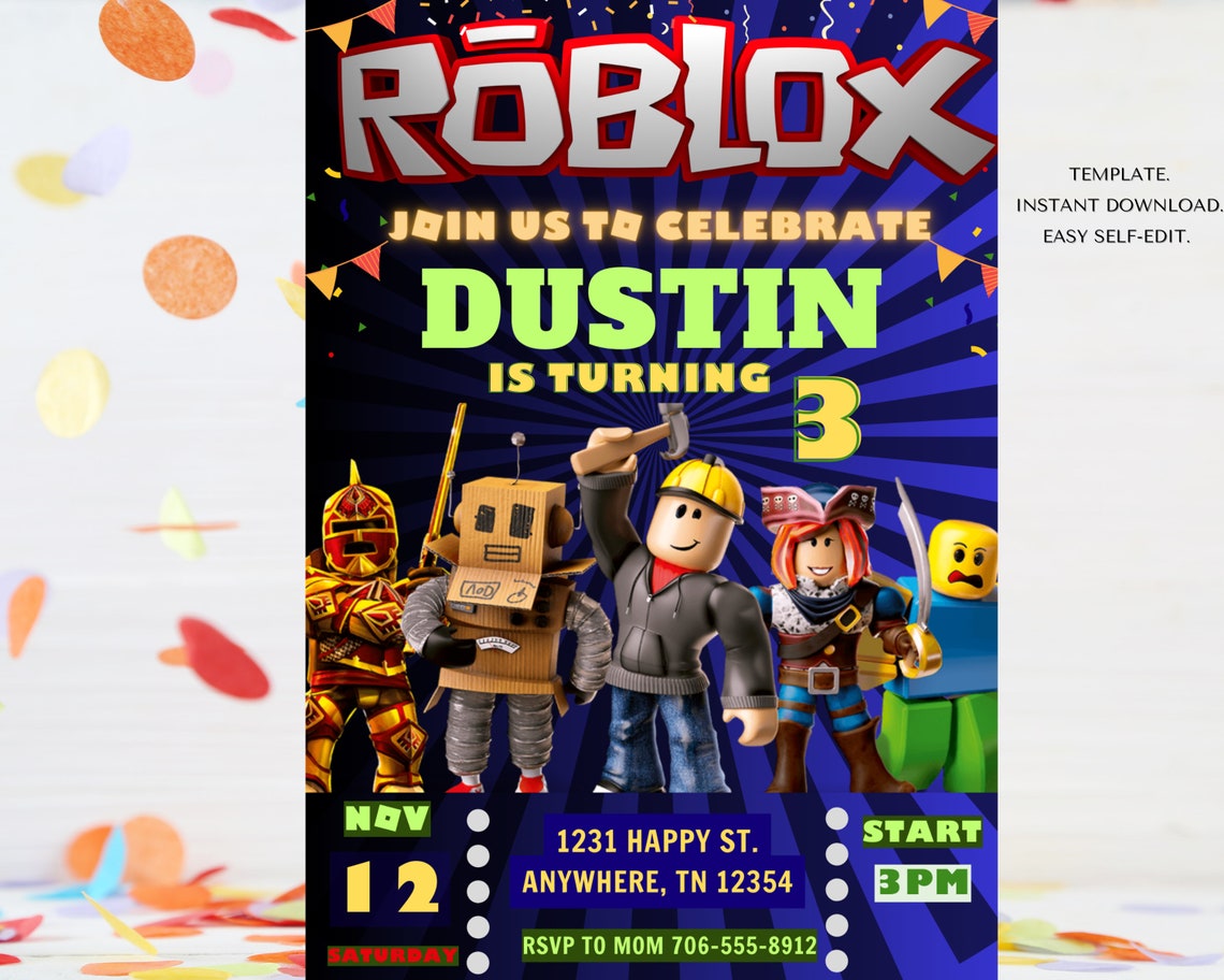 Roblox Invitation Roblox Invite Game Party Roblox Boy Birthday