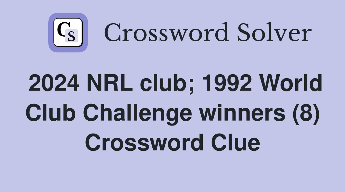 2024 NRL club 1992 World Club Challenge winners (8) Crossword Clue