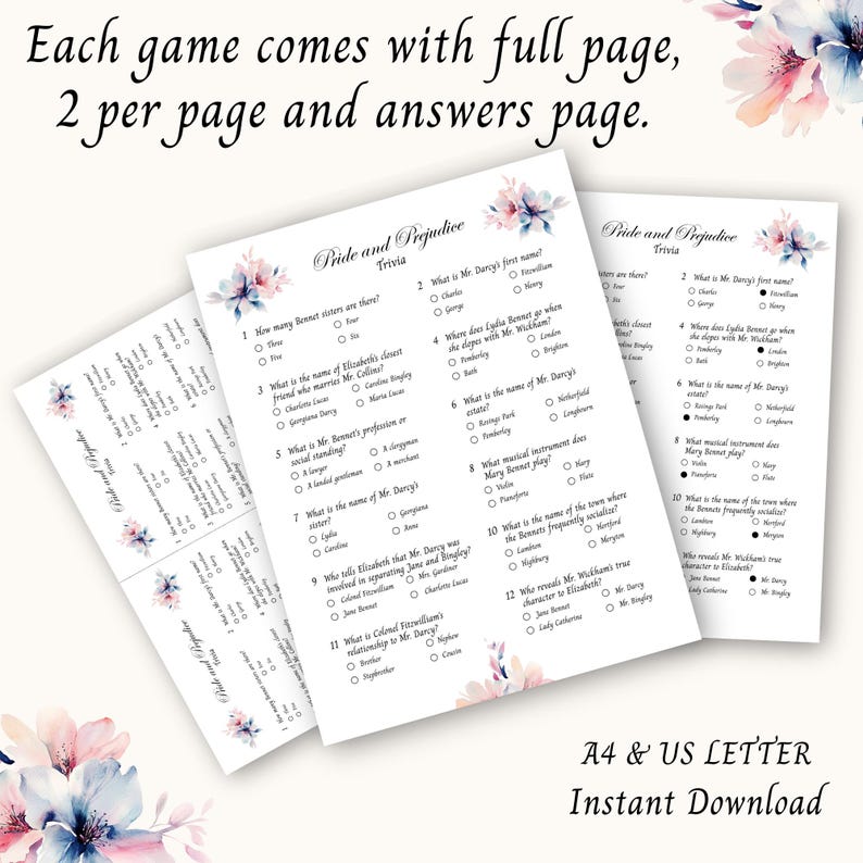 Pride and Prejudice Games Jane Austen Party Games Bridal Shower Fun
