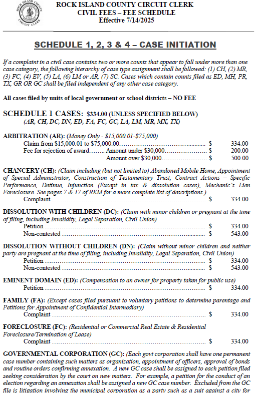 Filing Fees Rock Island County IL