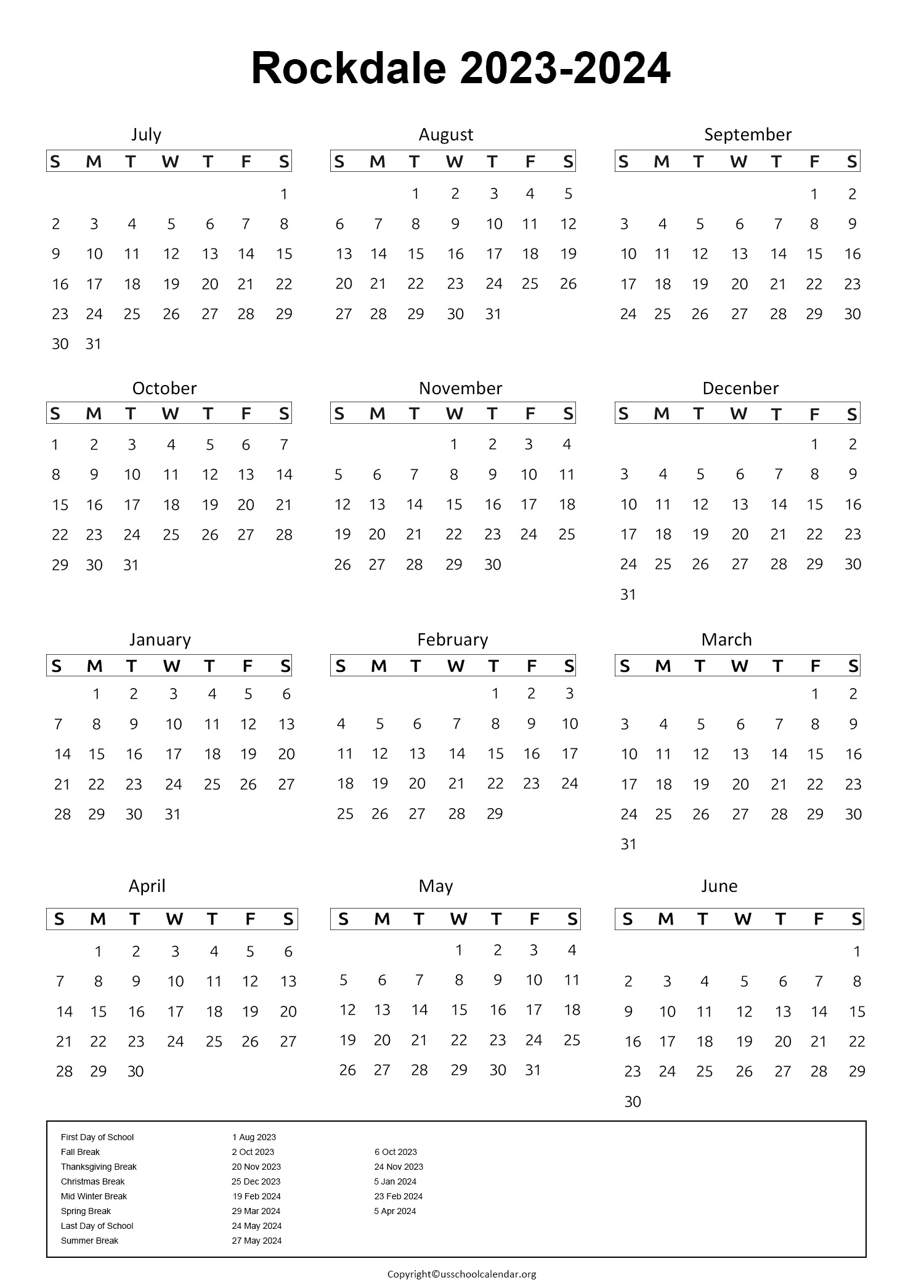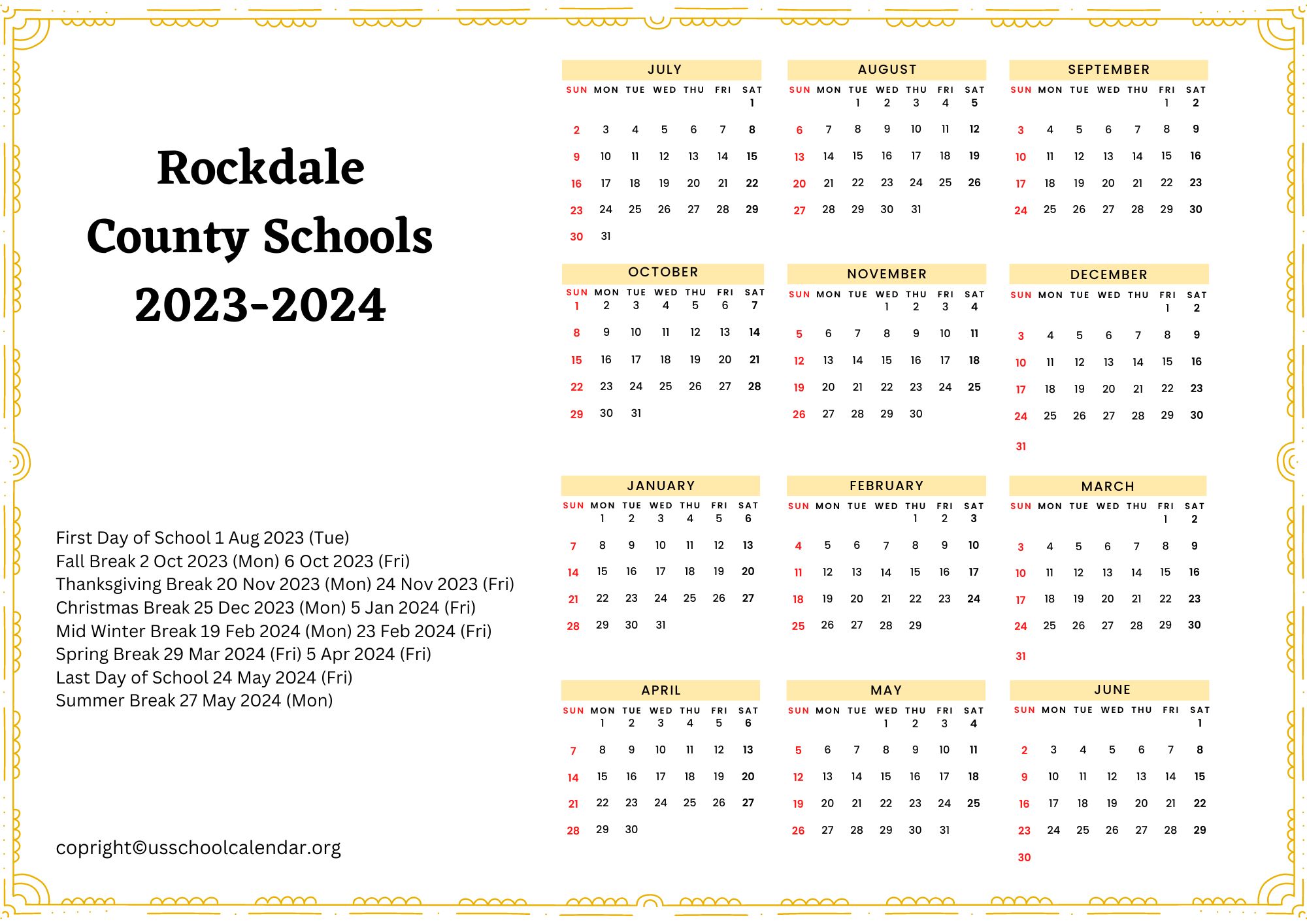 Rockdale County Schools Calendar with Holidays 2023 2024