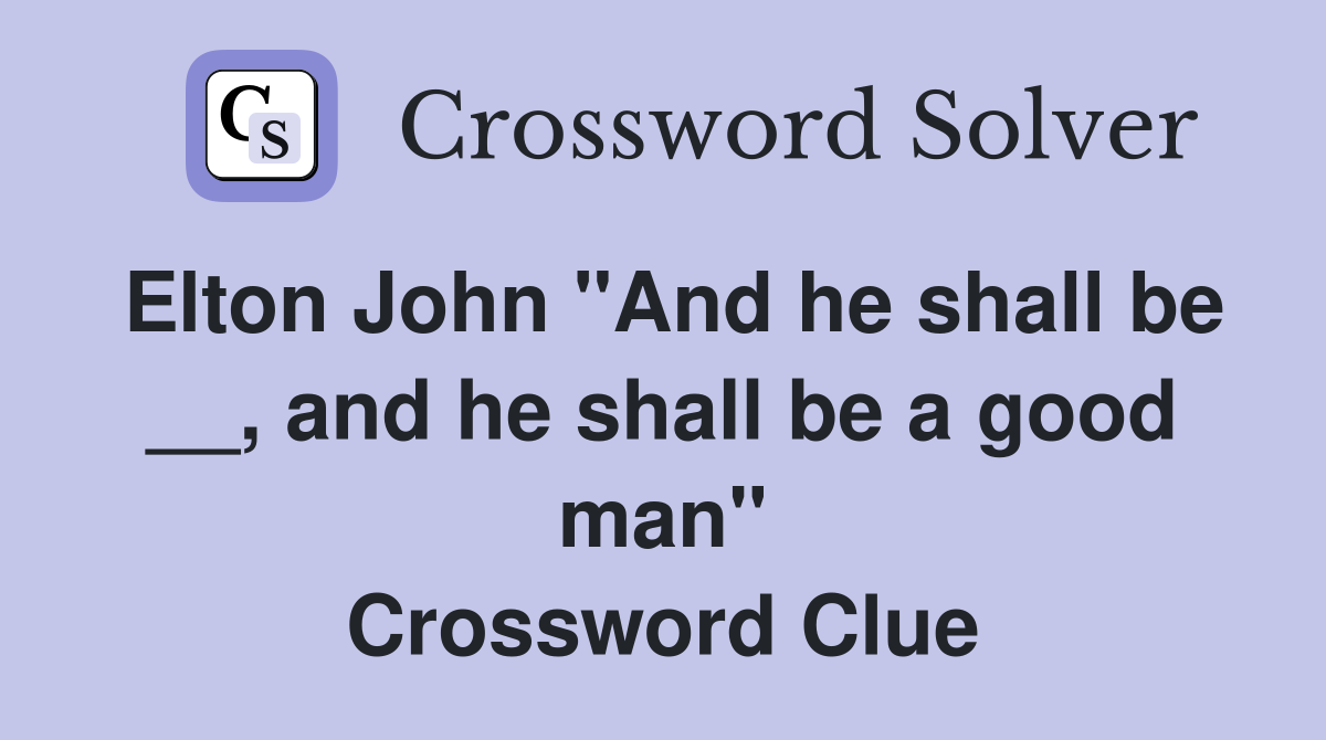 Elton John quot And he shall be and he shall be a good man quot Crossword