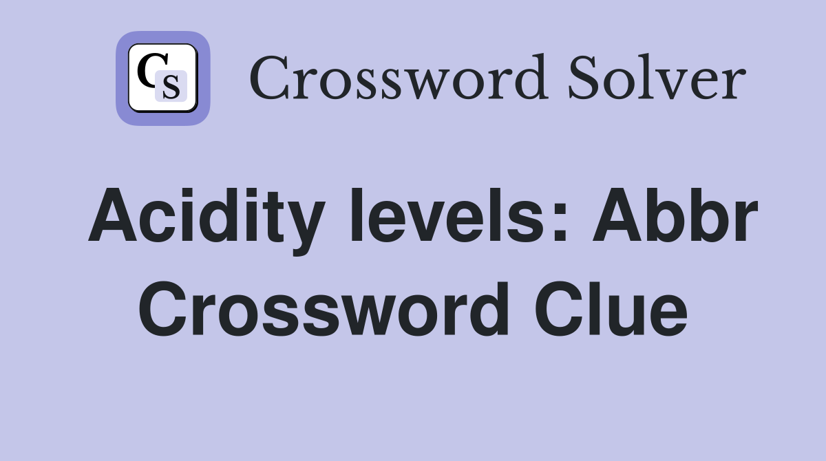 Acidity levels: Abbr Crossword Clue Answers Crossword Solver