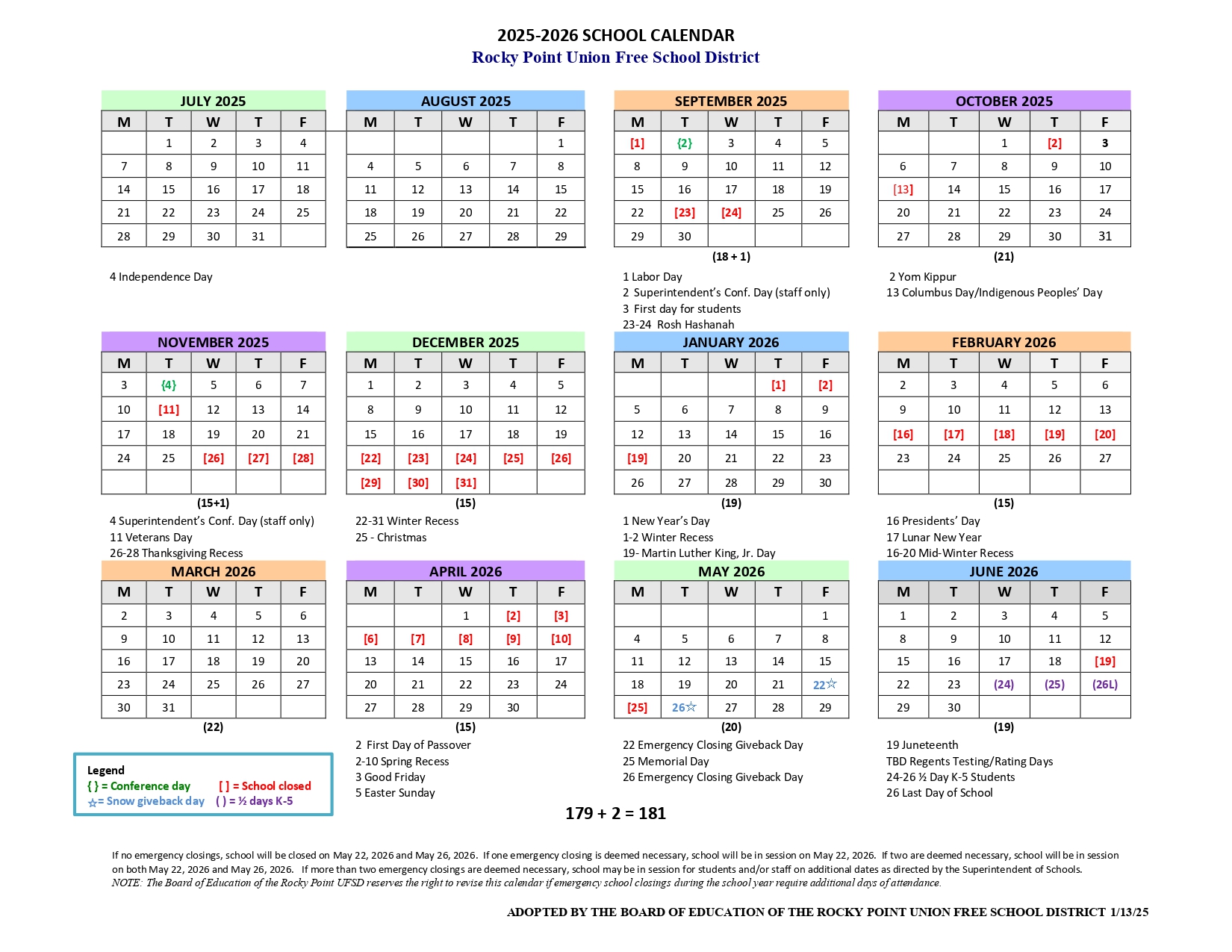 Rocky Point UFSD calendar 25 26 REVISED EduCounty