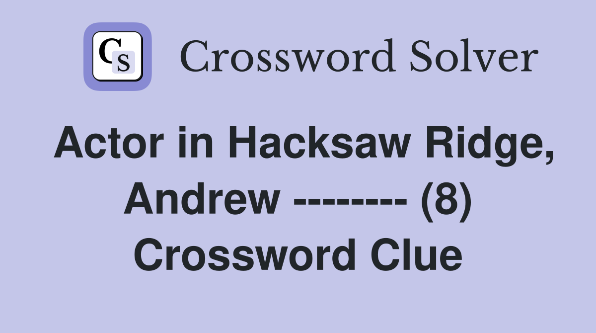 Actor in Hacksaw Ridge Andrew (8) Crossword Clue Answers