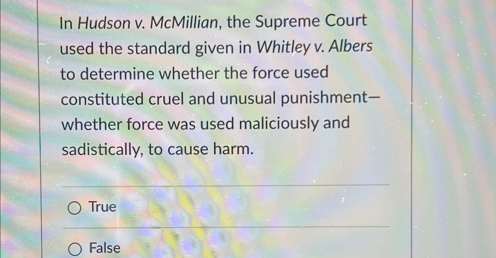 Solved In Hudson v McMillian the Supreme Court used the Chegg com