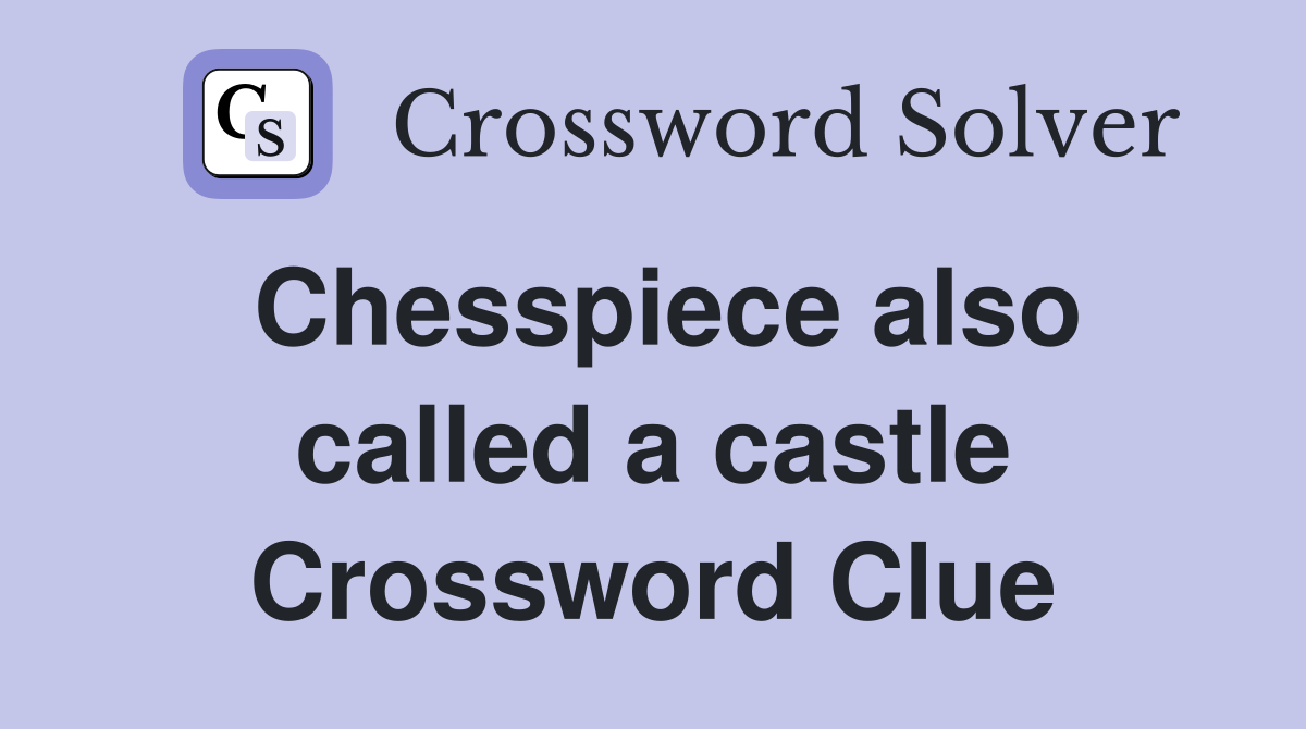 Chesspiece also called a castle Crossword Clue Answers Crossword Solver