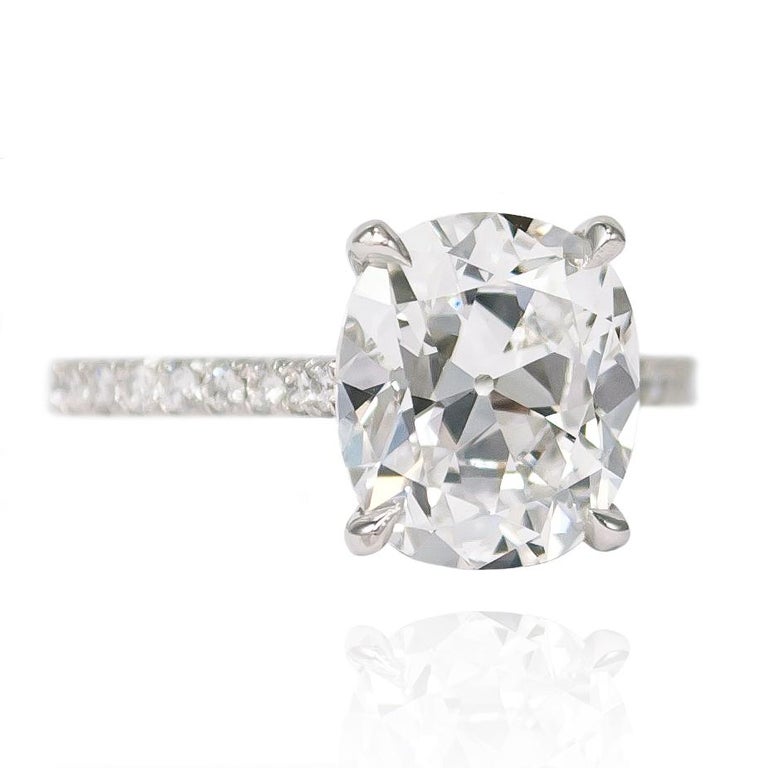 J Birnbach GIA Certified 3 02 Carat D SI1 Antique Cushion Diamond Ring