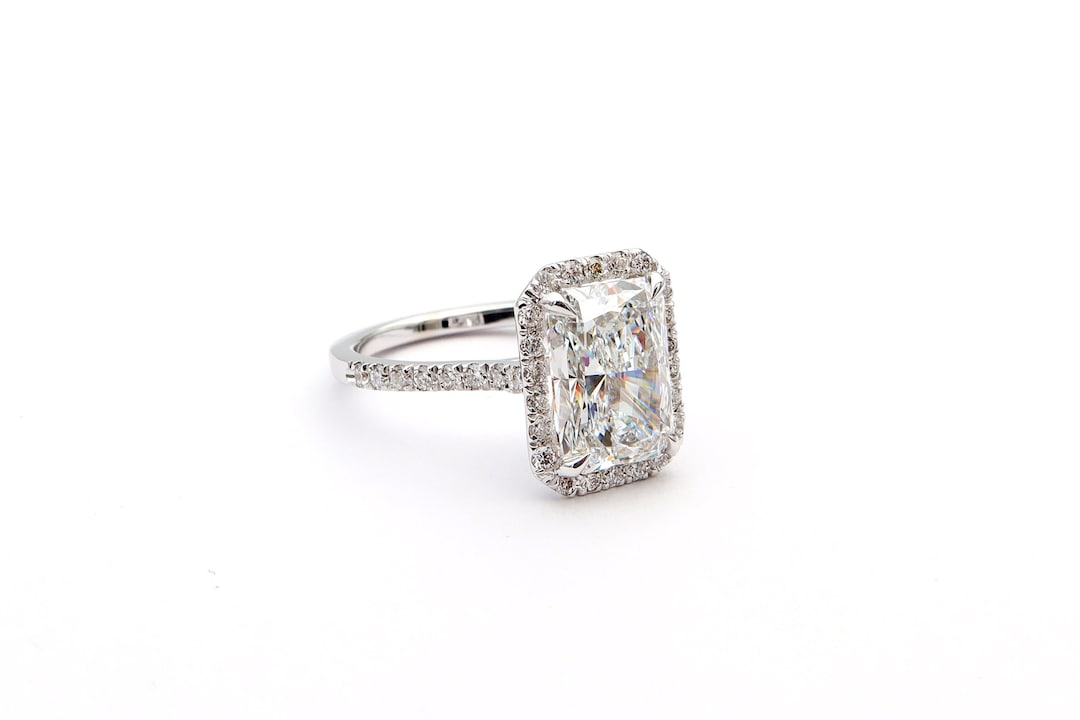 GIA Certified 5 59 Carat Radiant Diamond Engagement Ring 18 Karat in