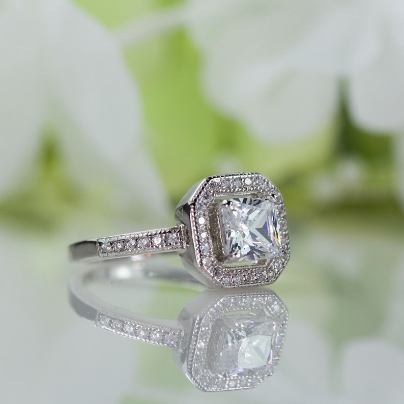 Micropavé Halo Princess Art Deco Style Band Cubic Zirconia Etsy