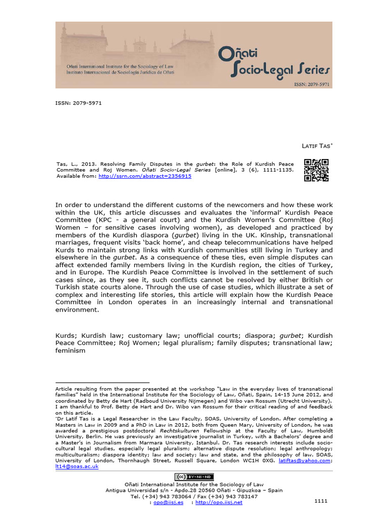 Resolving Family Disputes in the Gurbet: the Role of Kurdish Peace
