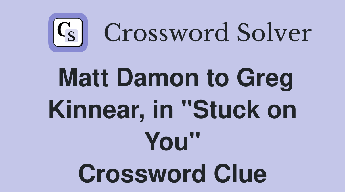 Matt Damon to Greg Kinnear in quot Stuck on You quot Crossword Clue Answers