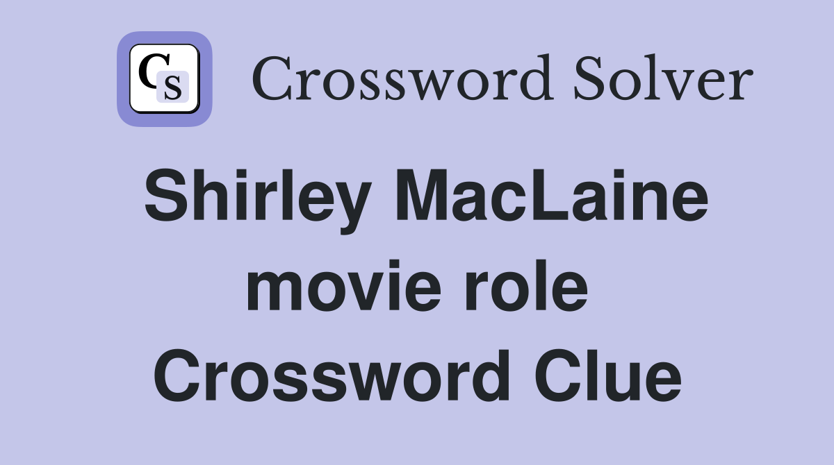 Shirley MacLaine movie role Crossword Clue Answers Crossword Solver