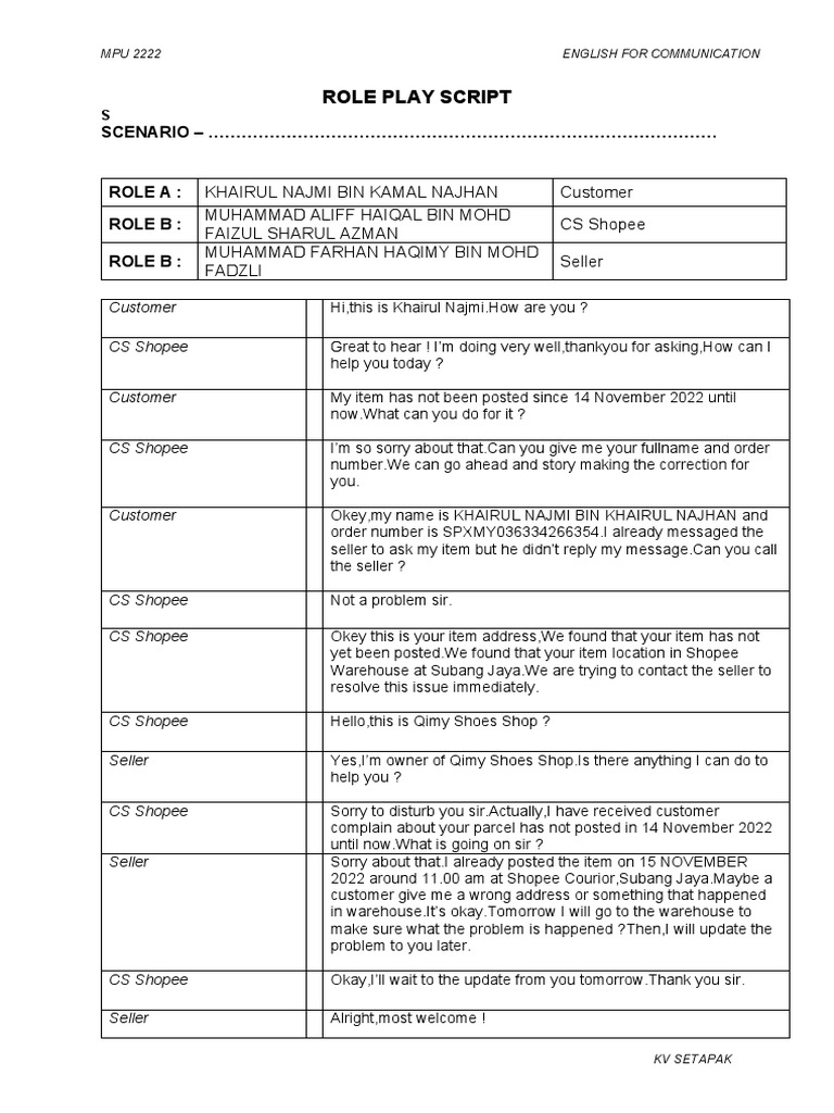 Role Play Script PDF