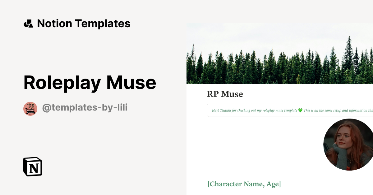 Roleplay Muse Template by Templates By Lili Notion Marketplace