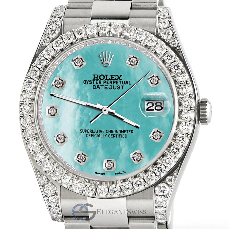 Rolex Datejust 126300 4 4ct Diamond Bezel/Lugs/Aquamarine MOP Dial