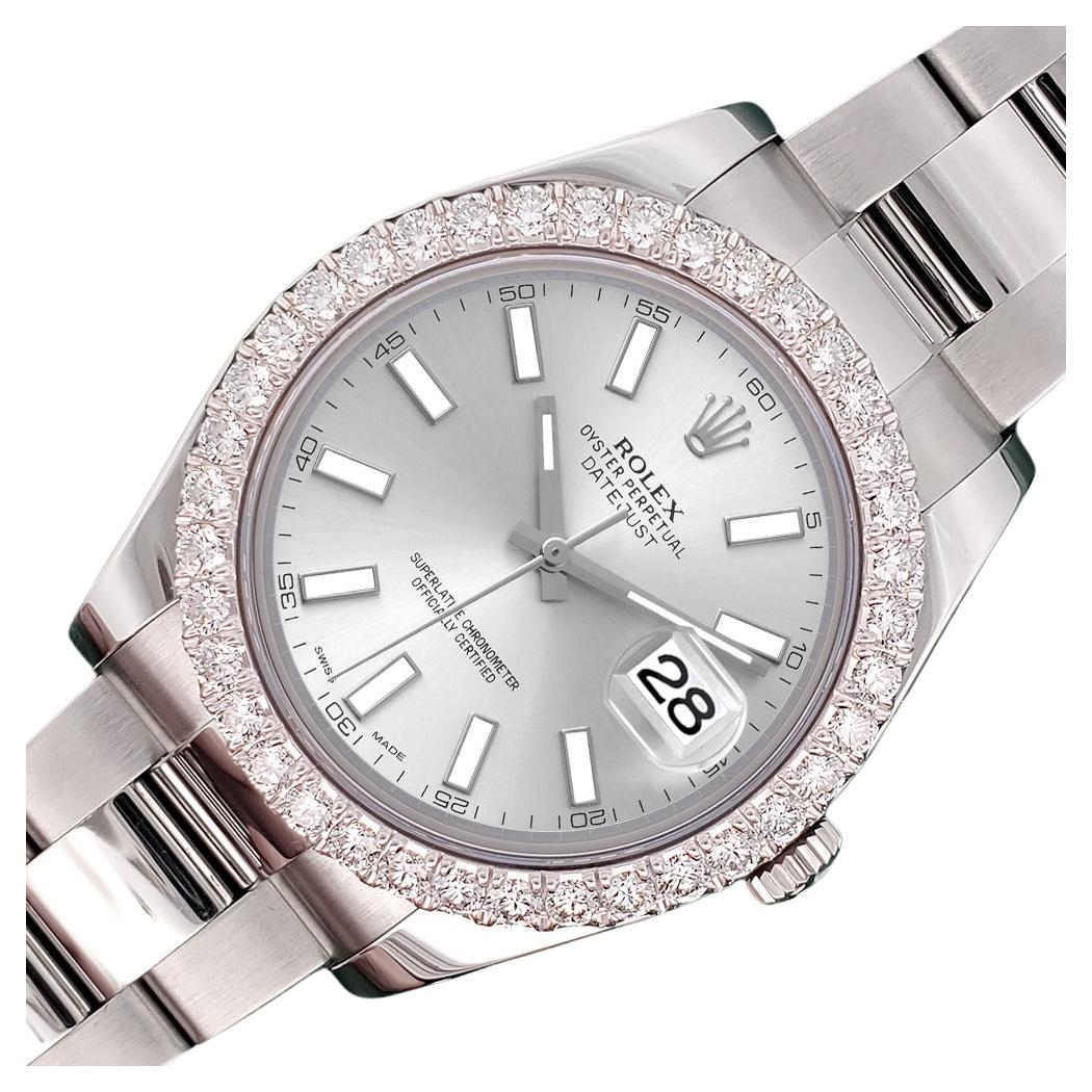 Rolex Datejust II 41mm 6 25ct Diamond Bezel/Rhodium Gray Watch 116300