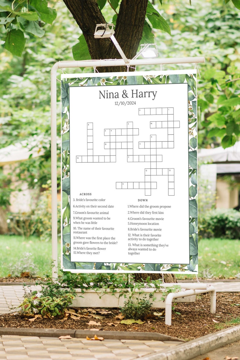 Personalized Wedding Crossword Puzzle Custom Wedding Activity Lawn