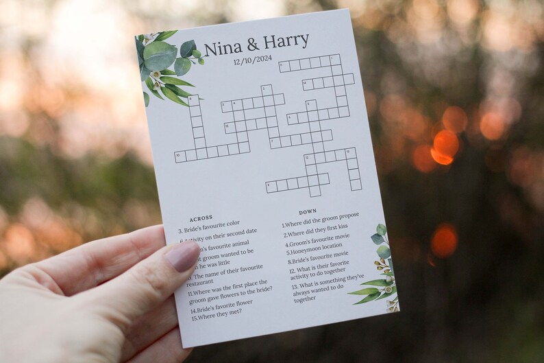 Custom Wedding Crossword Puzzle Sip and Solve Personalized Wedding