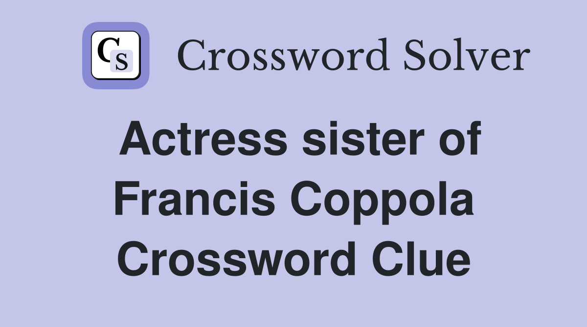 Actress sister of Francis Coppola Crossword Clue Answers Crossword