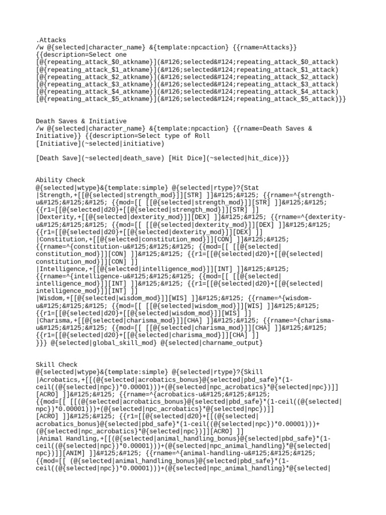 Roll20 Macro Templates