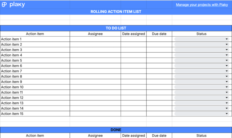 Free Rolling Action Item List Templates For Google Sheets And Microsoft