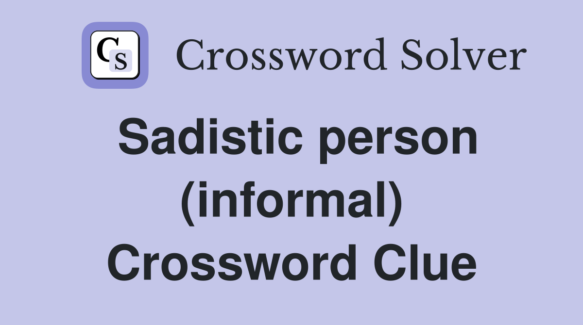 Sadistic person (informal) Crossword Clue Answers Crossword Solver