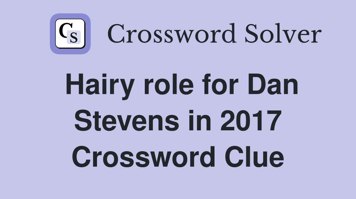 Hairy role for Dan Stevens in 2017 Crossword Clue Answers Crossword