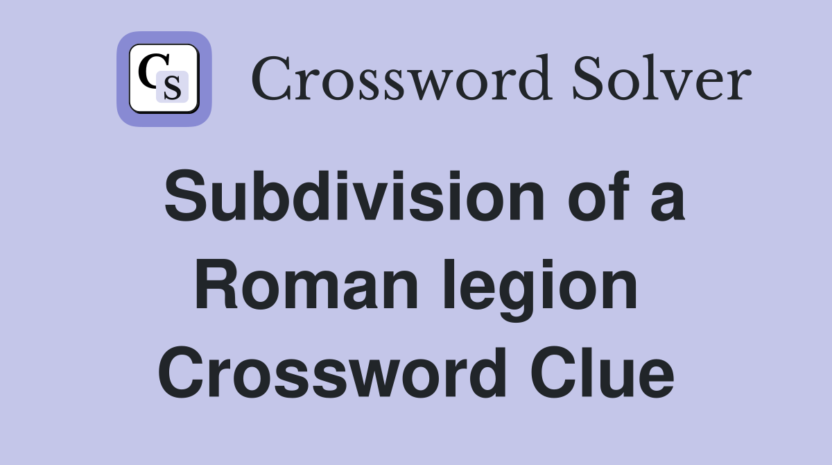 Subdivision of a Roman legion Crossword Clue Answers Crossword Solver