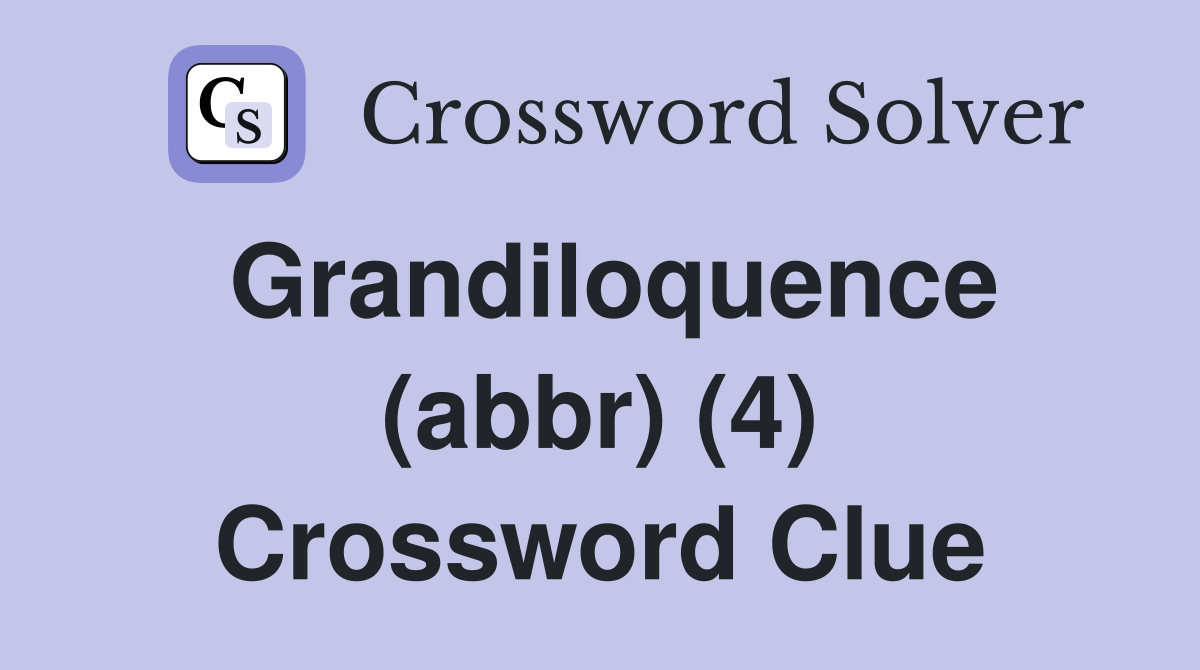 Grandiloquence (abbr) (4) Crossword Clue Answers Crossword Solver