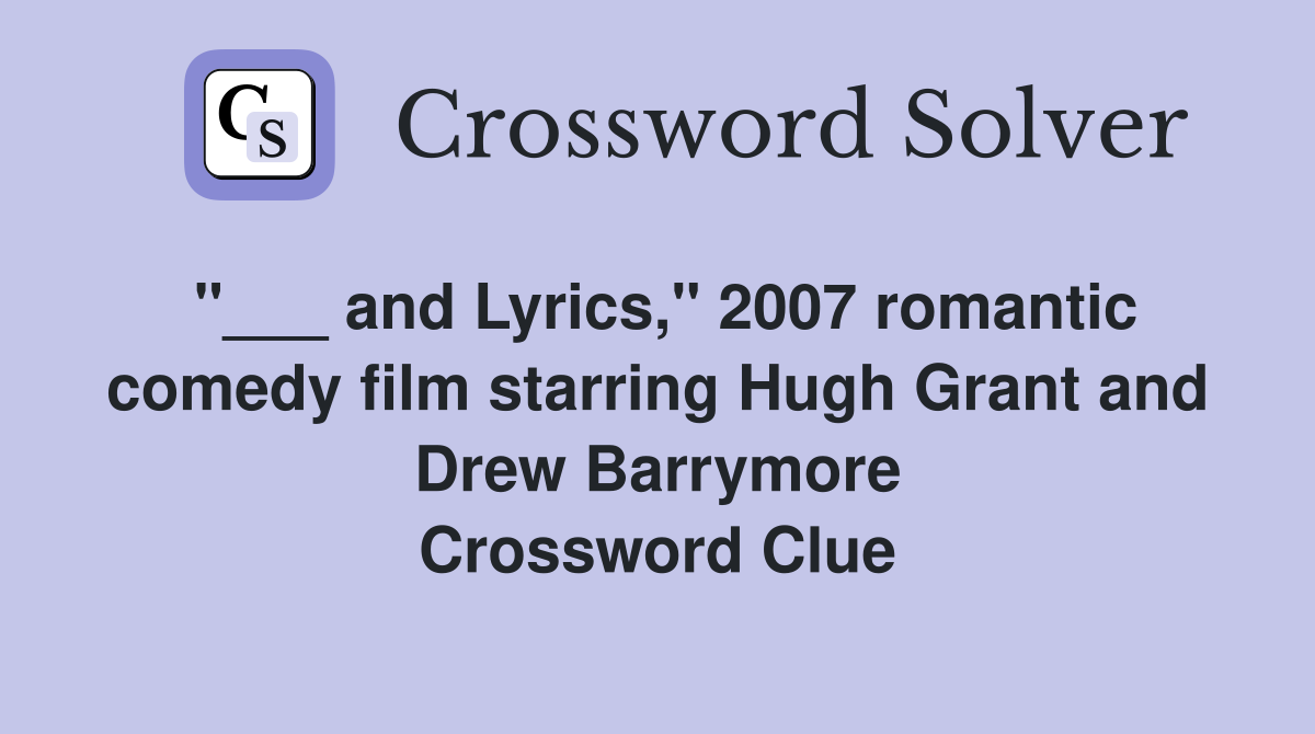 and Lyrics quot 2007 romantic comedy film starring Hugh Grant and Drew