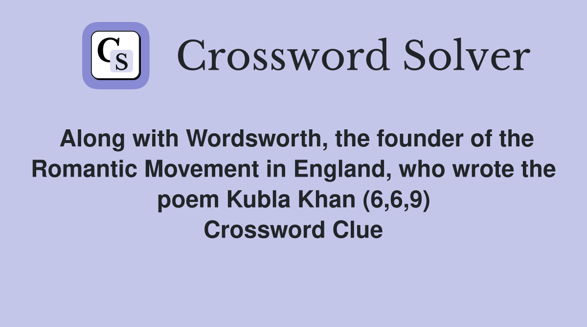 Here are some of the images for Romantic Poet Crossword Clue that we found in our website database.