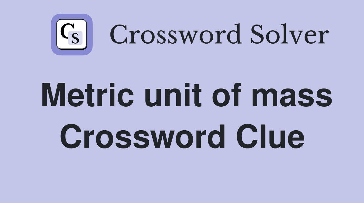 Metric unit of mass Crossword Clue Answers Crossword Solver