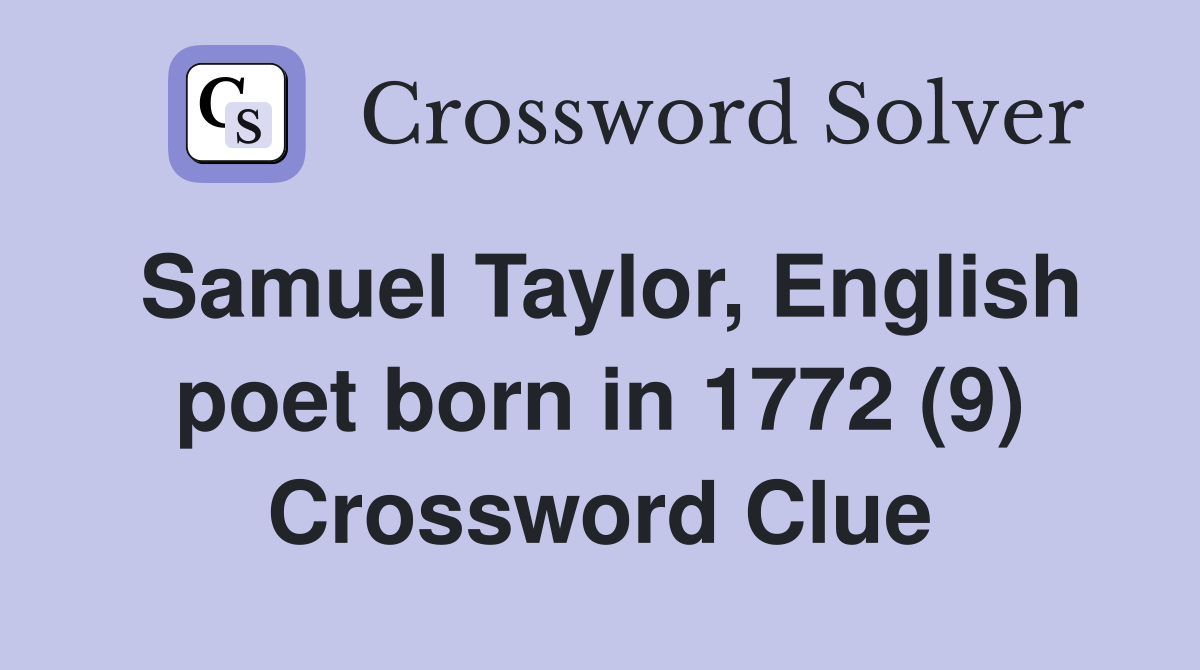 Samuel Taylor English poet born in 1772 (9) Crossword Clue Answers