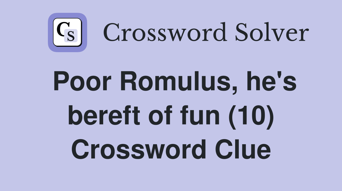 Poor Romulus he #39 s bereft of fun (10) Crossword Clue Answers