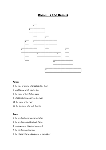 ROMULUS REMUS Crossword Puzzle All about ROMULUS REMUS Crossword