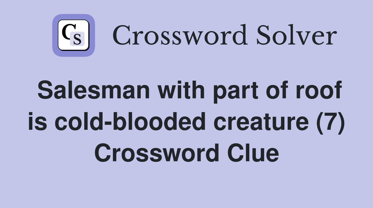 Salesman with part of roof is cold blooded creature (7) Crossword