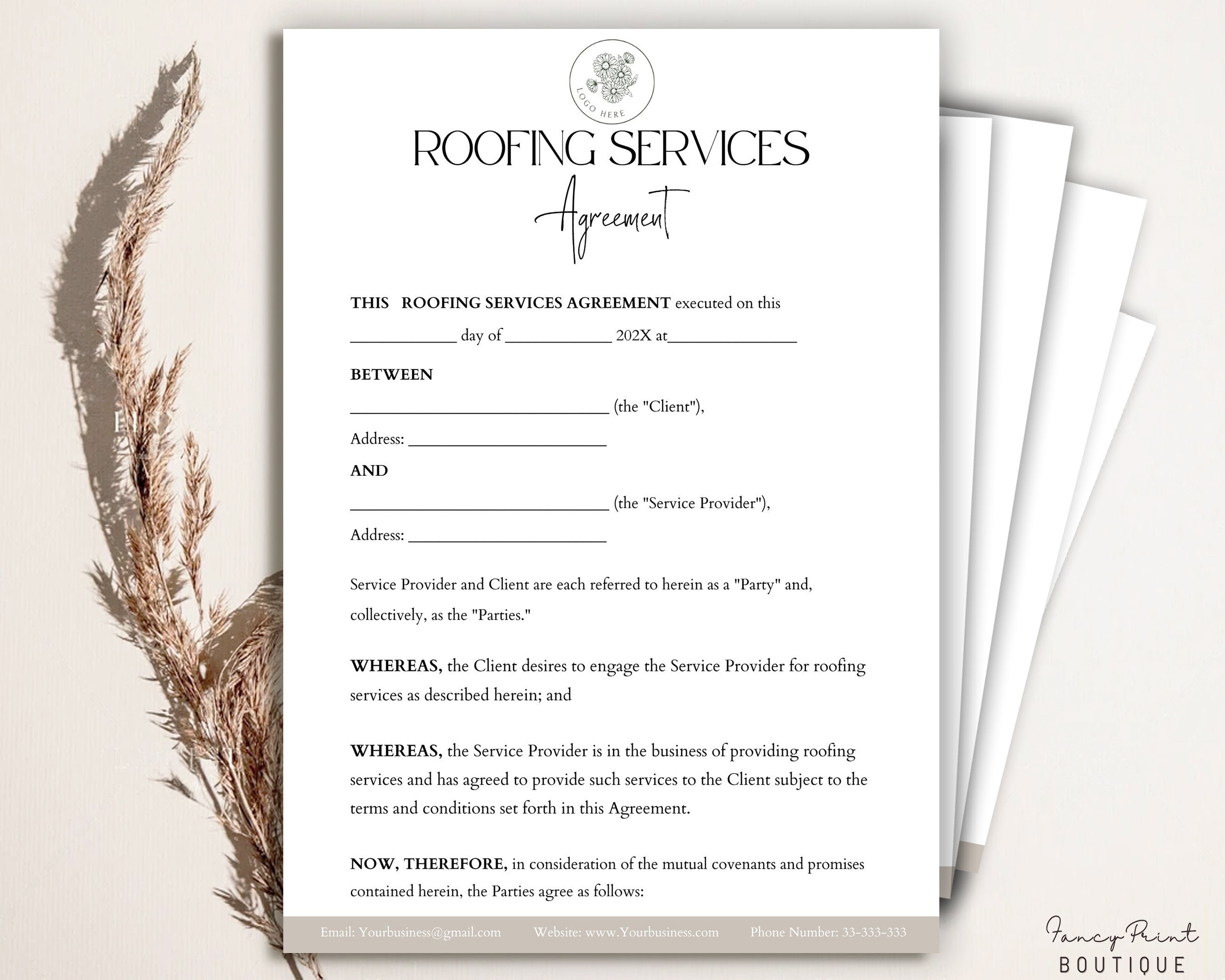 Roofing Service Contract Form Roofing Contract Template Editable