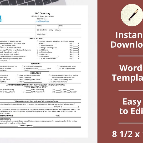 Roof Replacement Contract Etsy