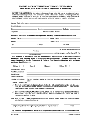 Roofing Installation Information and Certification Form: Fill out