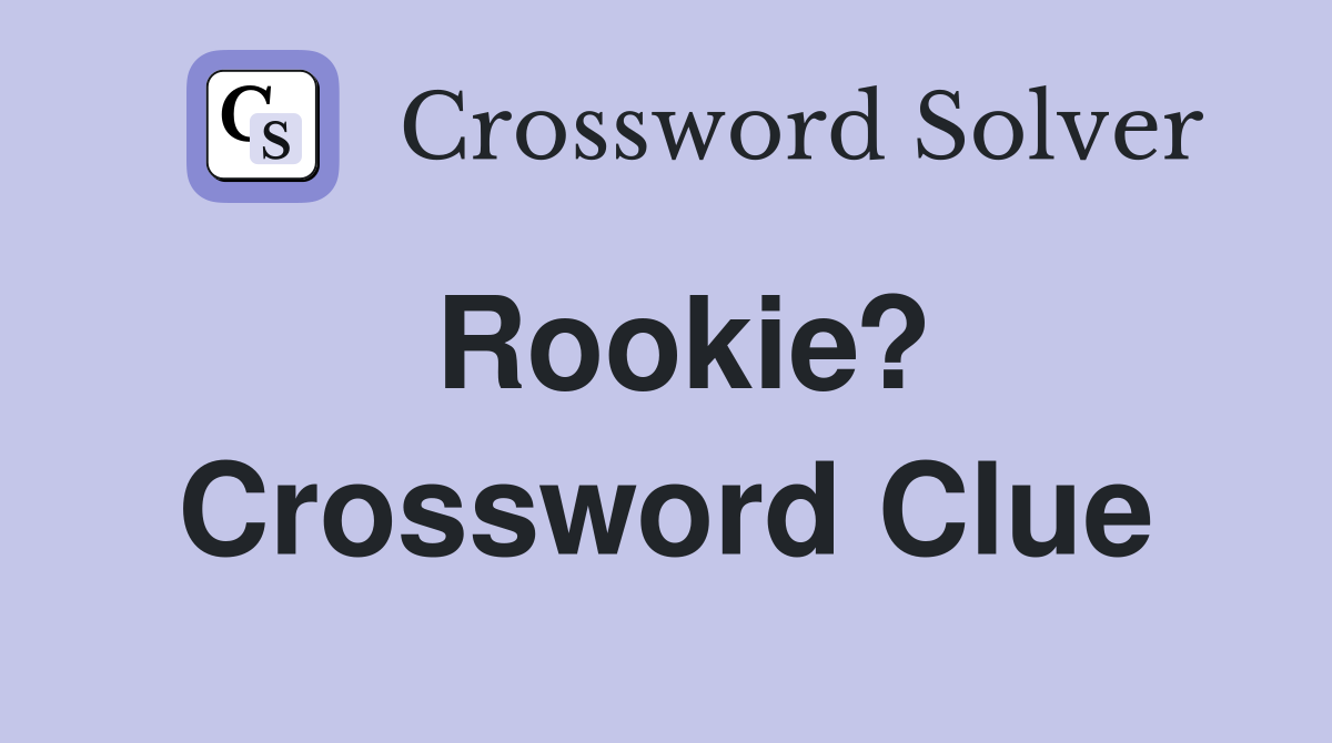 Rookie? Crossword Clue Answers Crossword Solver