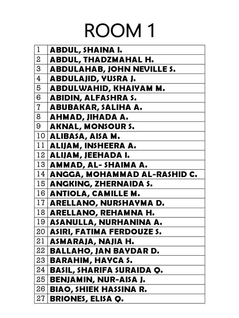 ROOM ASSIGNMENTS PDF