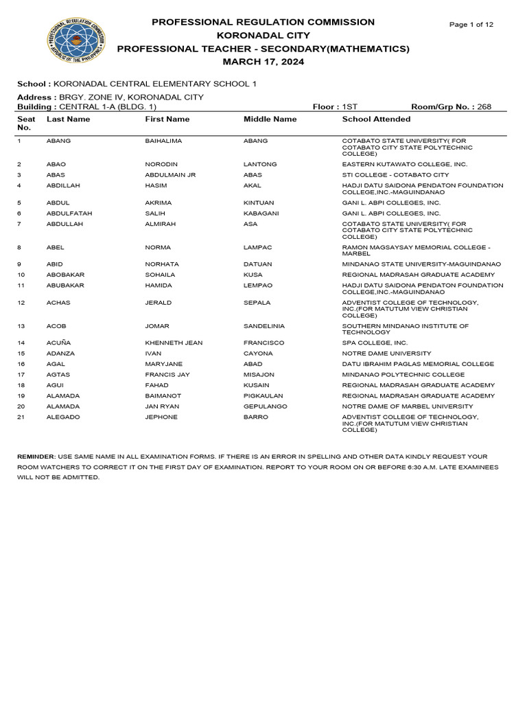 Room Assignments PDF